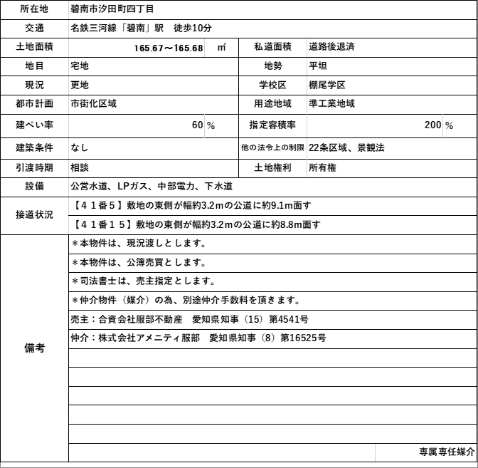 売土地/碧南市汐田町四丁目