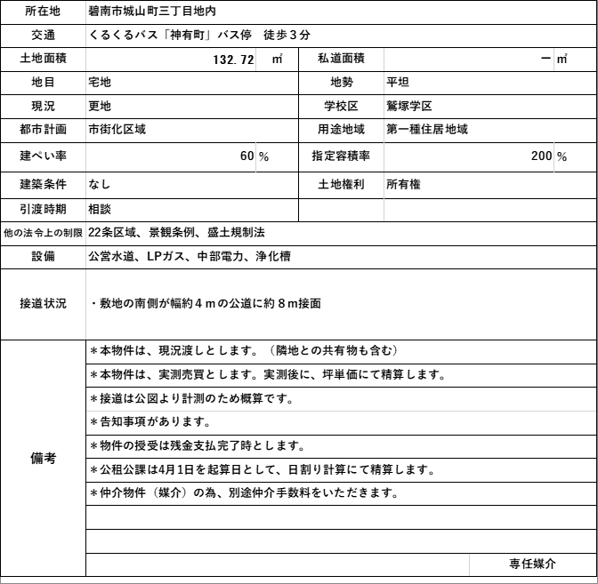 売土地/碧南市城山町三丁目地内