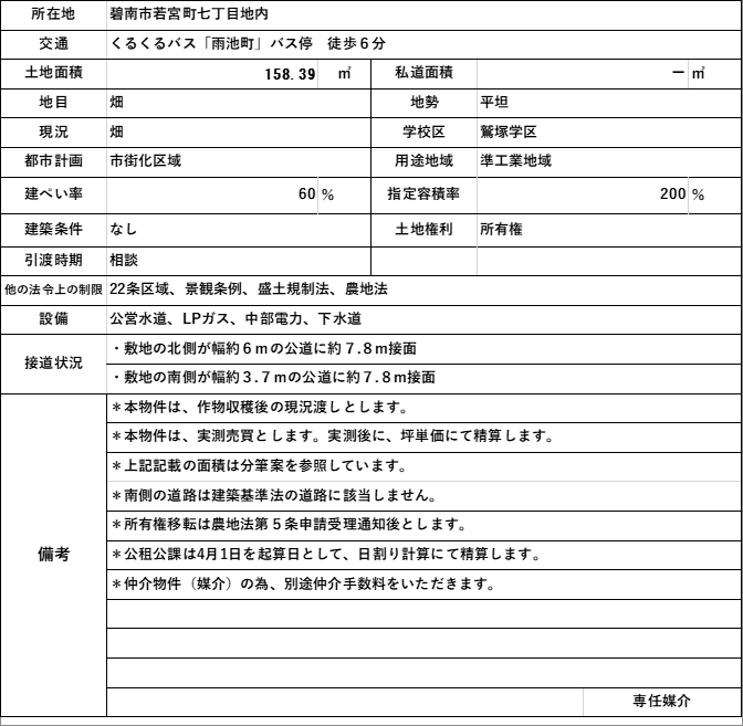 売土地/碧南市若宮町七丁目地内